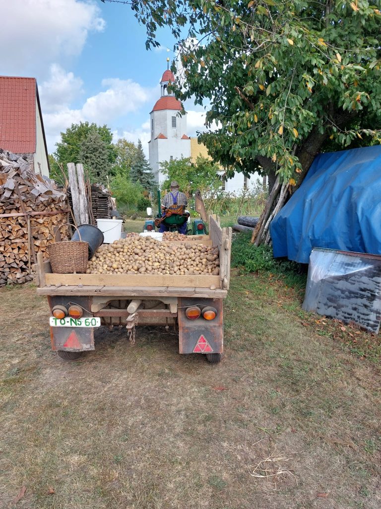 In diesem Jahr fiel die Ernte etwas schlechter aus als üblich. Dies hatte vor allem – laut großväterlicher Einschätzung – mit den ungünstigen Witterungsbedingungen zu tun. Viel Regen hatte die Kartoffelpflanzen zu stattlicher Größe heranwachsen lassen. Die darauffolgende Trockenheit allerdings verhinderte, dass sich besonders große Knollen an den Wurzeln bilden konnten. Für ein paar leckere Mahlzeiten und als Futtermittel für die Hof-Tiere würde es aber allemal reichen.